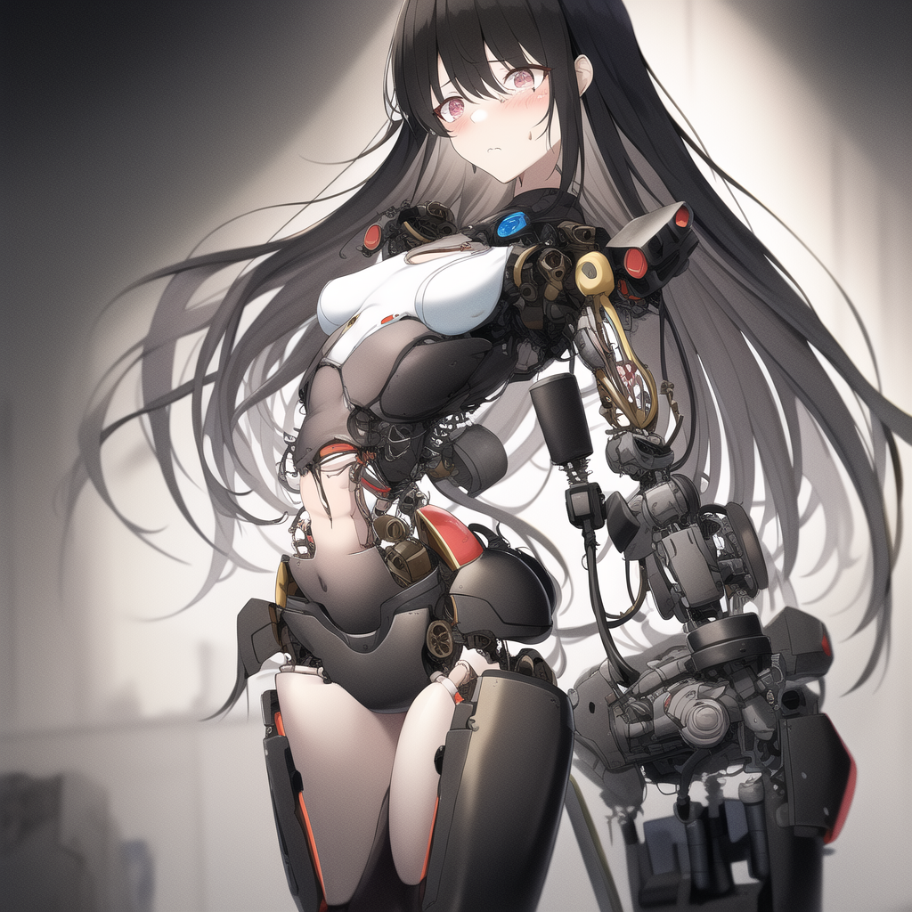 「もう…!仕事中なんだから、私の体内の部品をジロジロ眺めるより、ちゃんと工場の方の電子設備を点検しなさいよ…!給料日になったら絶対新しい外装パネルを買うから!」