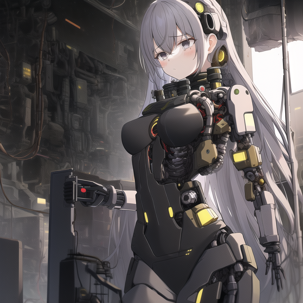「もう…!仕事中なんだから、私の体内の部品をジロジロ眺めるより、ちゃんと工場の方の電子設備を点検しなさいよ…!給料日になったら絶対新しい外装パネルを買うから!」