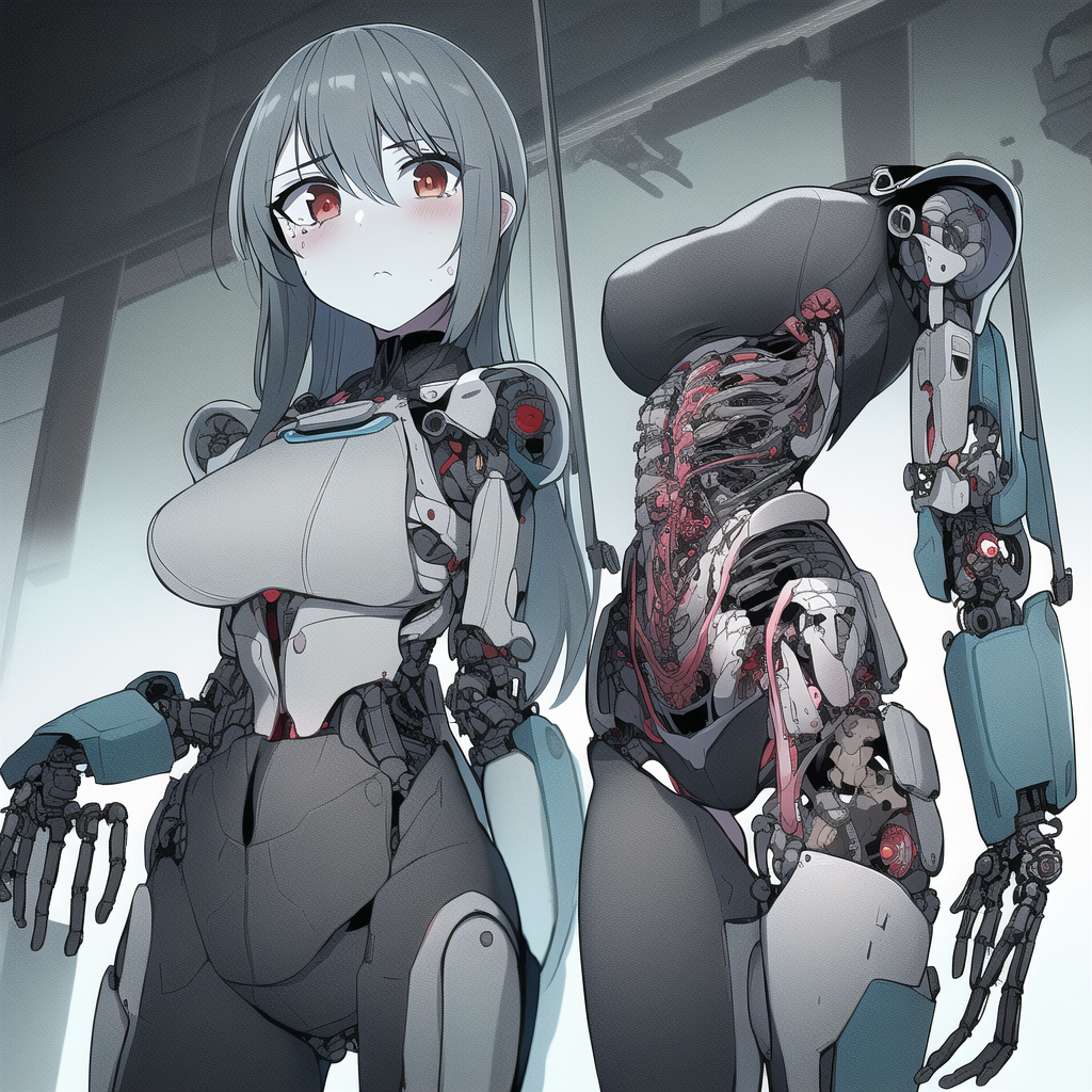 「このまま突っ立っていてと言われても…肩の透明パーツから脇の内部メカが他人に見られたら、超恥ずかしいし嫌よ…」 「大事な展示会だから、文句言わないでしっかりしてて。じゃないと隣の生意気だった子のように、解剖模型にされて全身隅から隅まで見られちゃうから」