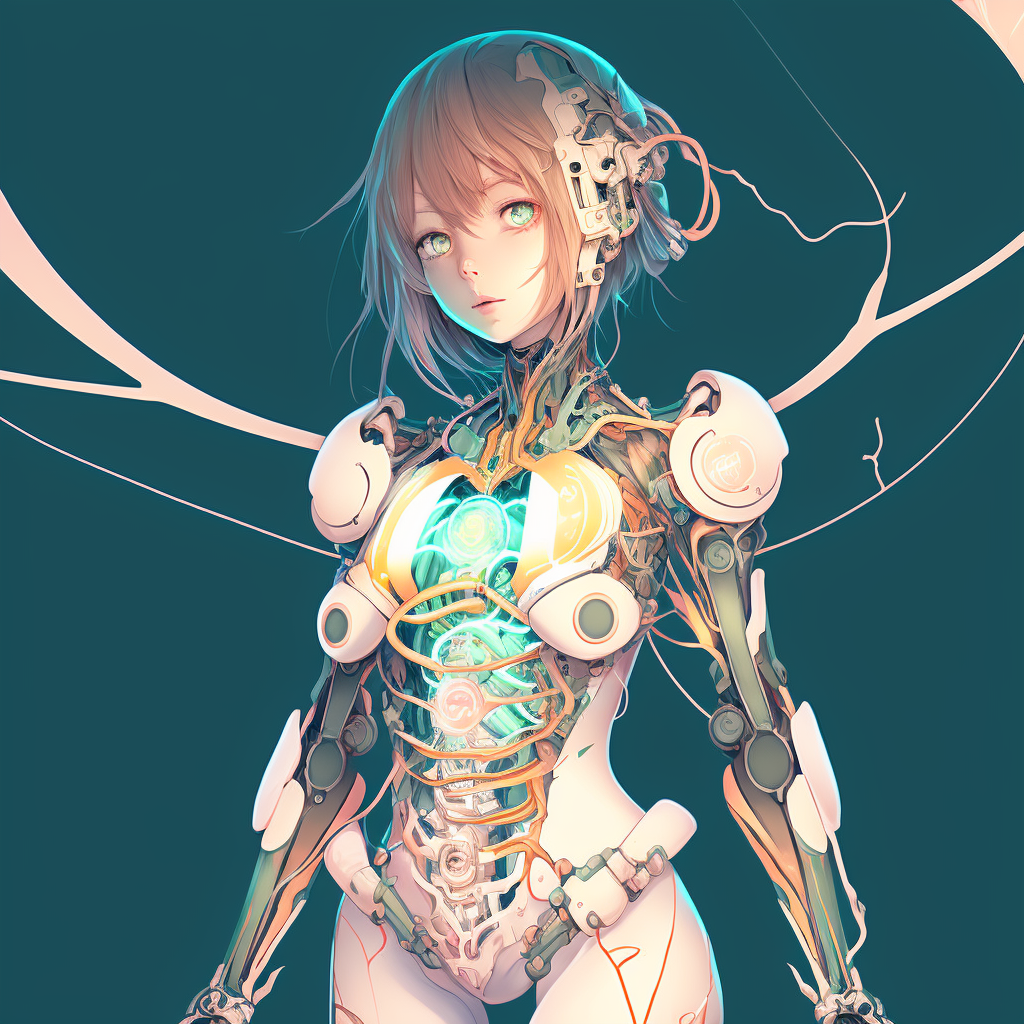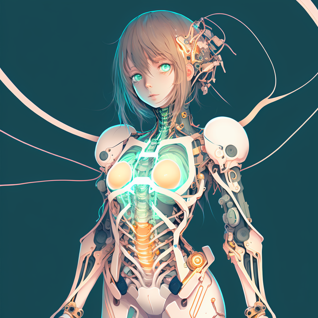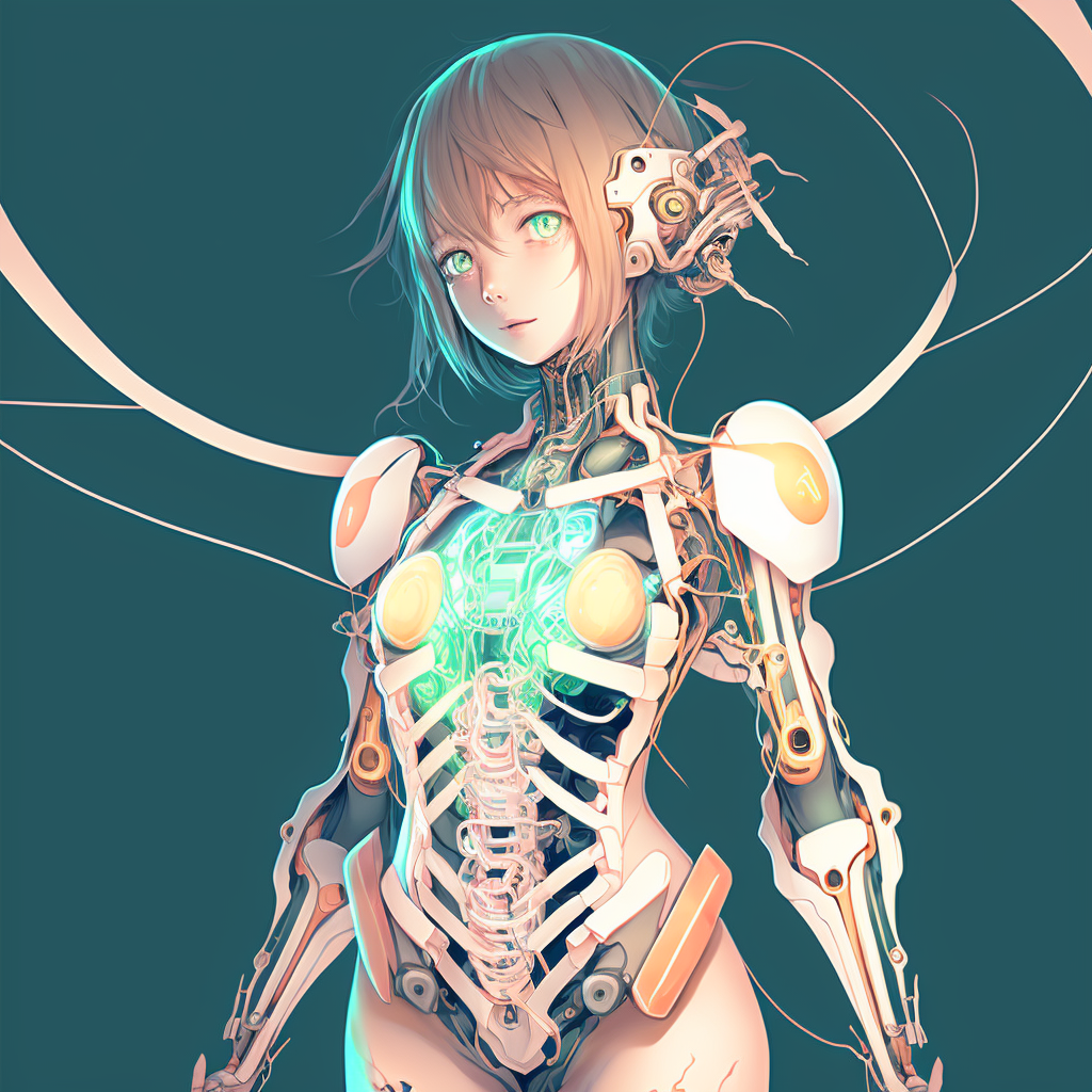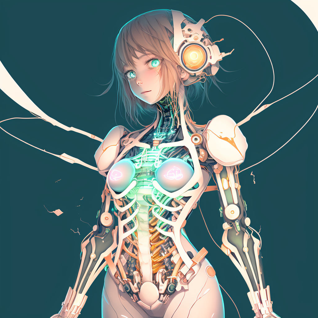 「X社新型機の内部構造図だ。弱点は胸元の光ってるコアだからまずあれを狙え。引っこ抜いたら機能停止するはずだ」 「金になる部品は?」 「コアと各センサーだ。顔パーツも可愛いからそこそこ売れそう。でも電子脳や汎用品部品などは屑鉄同等だから、適当に処分していいぞ」