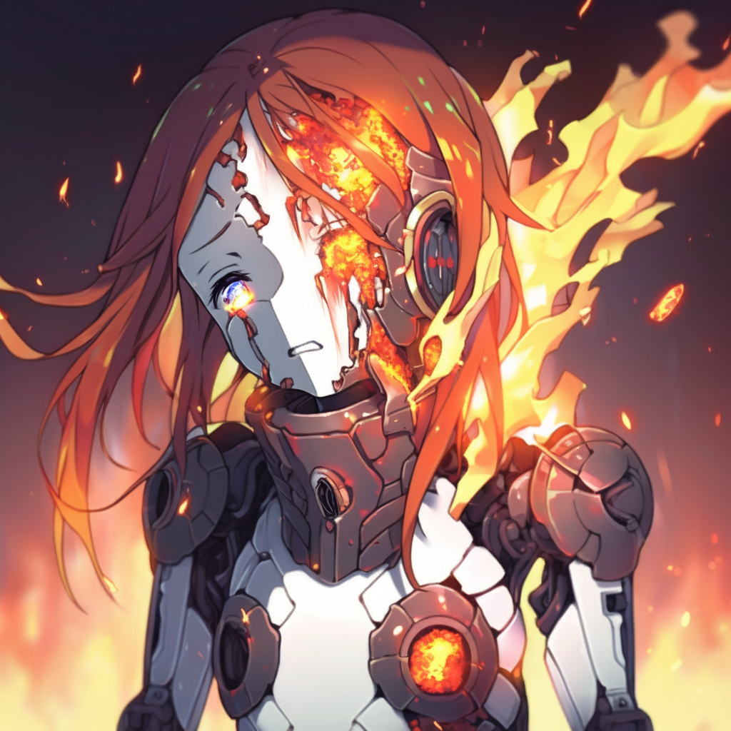 「ええっ!あの子、先急に燃え始めてる…!?」 「電池発火だろ。野良ロボは整備受けてないし。人間を巻き込まないように、彼女は痛そうな顔で何とか広場の方に行ってからぶっ倒れたんだが」 「うそっ!歩く爆弾じゃん!政府もしっかりしてあんな燃えるゴミ早く片付けろよ」