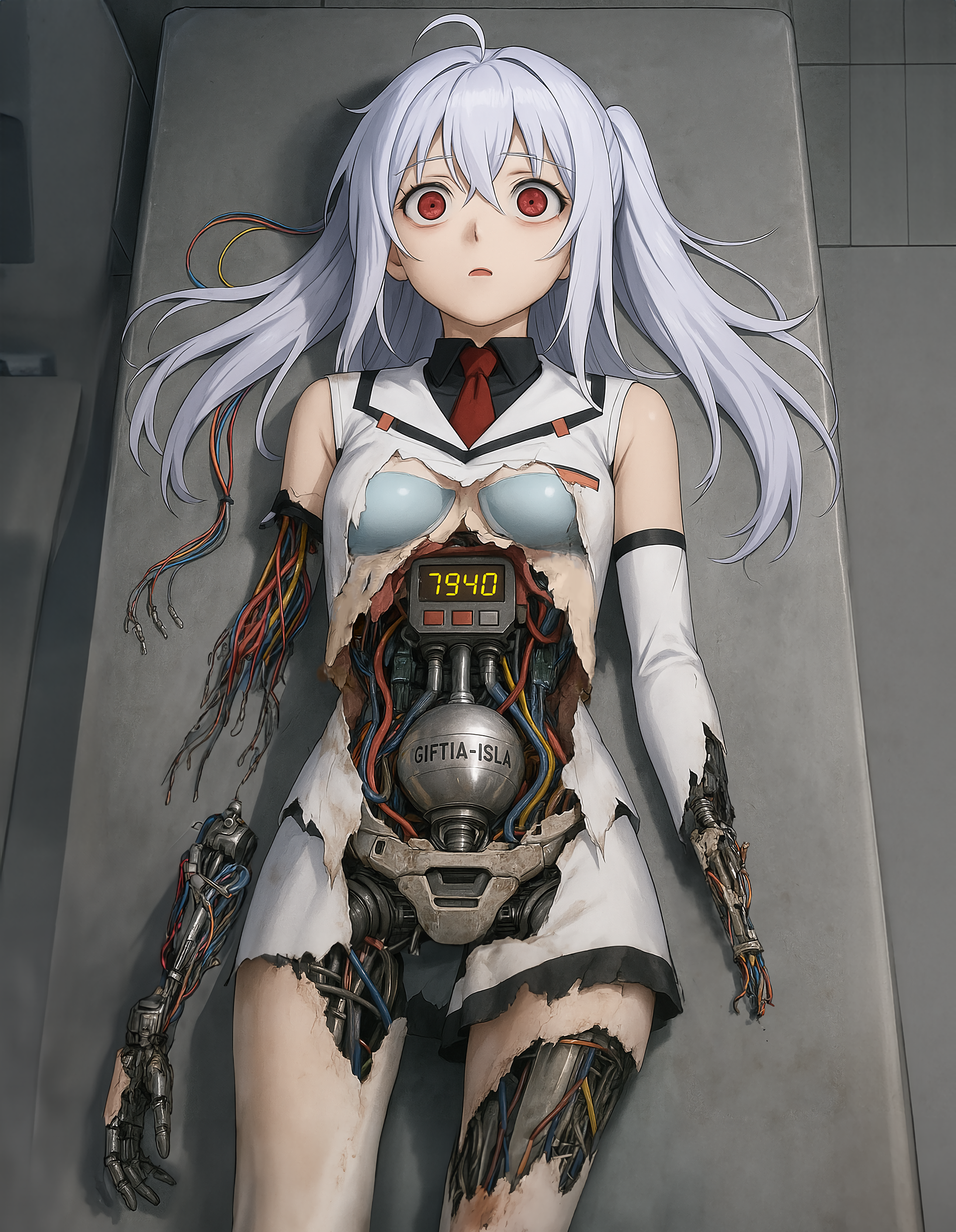 メカバレ度を最大限アップさせるために、部品の配置も質感も色々と拘った 脳内設定 ⚪︎左手は拉致された際に紛失、他の部分は闇工場で雑に分解 ⚪︎カウンターは普段は稼働日数、機能停止の場合は機体番号。OS設定・リセットボタンも ⚪︎コアはアルマという、プラメモゲーム本編に出た人工の心