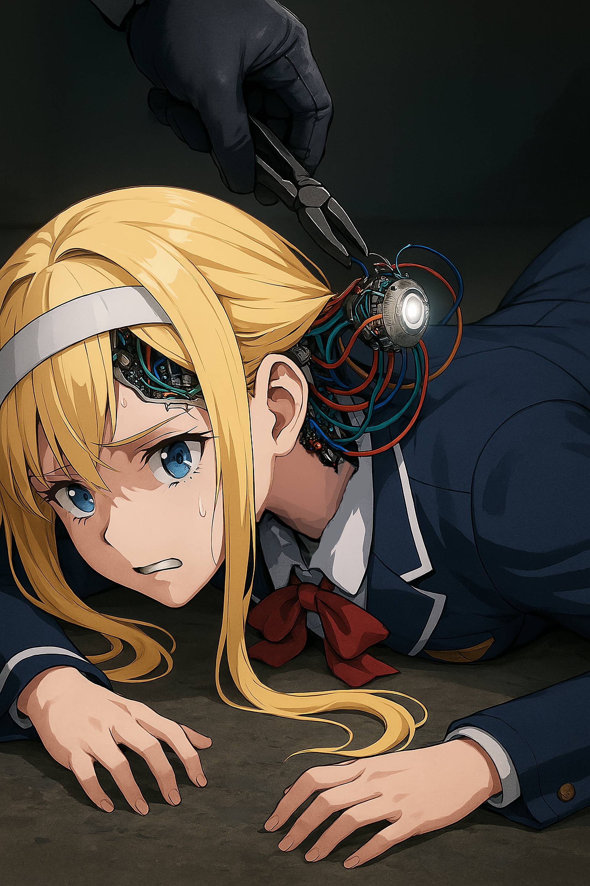 (記者会見で) 「アリスさんは既存のロボットとどう違うのですか?頭蓋を開いて内部を見せてください」 「まずは、あなたが頭蓋を開いて人間であることを証明してください。」 (数時間後) 「こんなチャチなもんが電子脳か?今の玩具ロボットと大した違いがないな」 「よくあんなナメた口利きやがって、玩具のくせに」 「とりあえず配線を数本切って、人間様への正しい口の聞き方を覚えてもらおう」