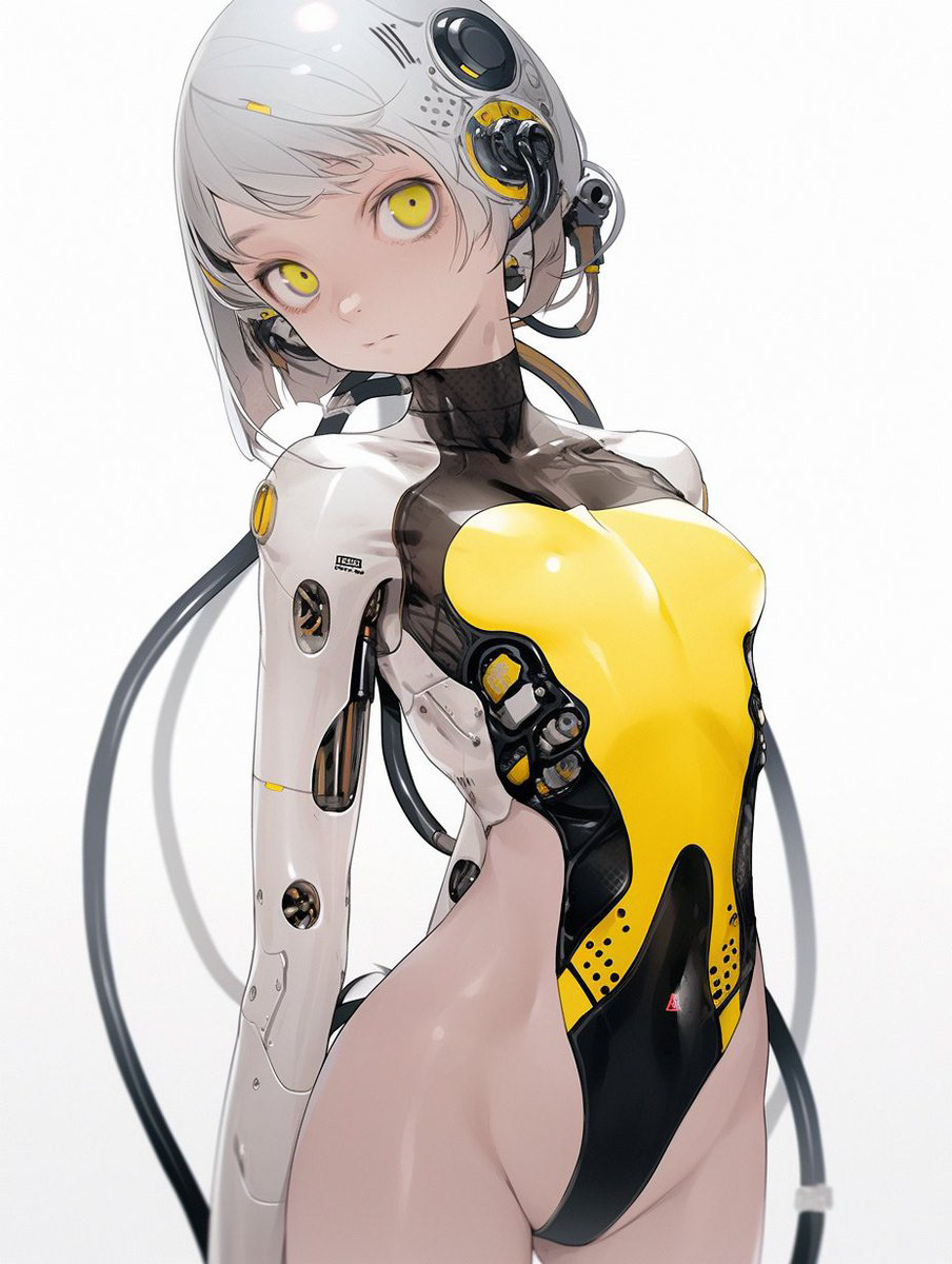 「これは我が社の新型機です。運動機能に特化したので、流線型の筐体も内部部品も軽量化済みで、高出力エンジンも内蔵してます。皮には排熱用の穴も複数あります」 「お臍の穴は排気口にしては小さ過ぎない?」 「あれは製作者の趣味だけなので気にしないでください」
