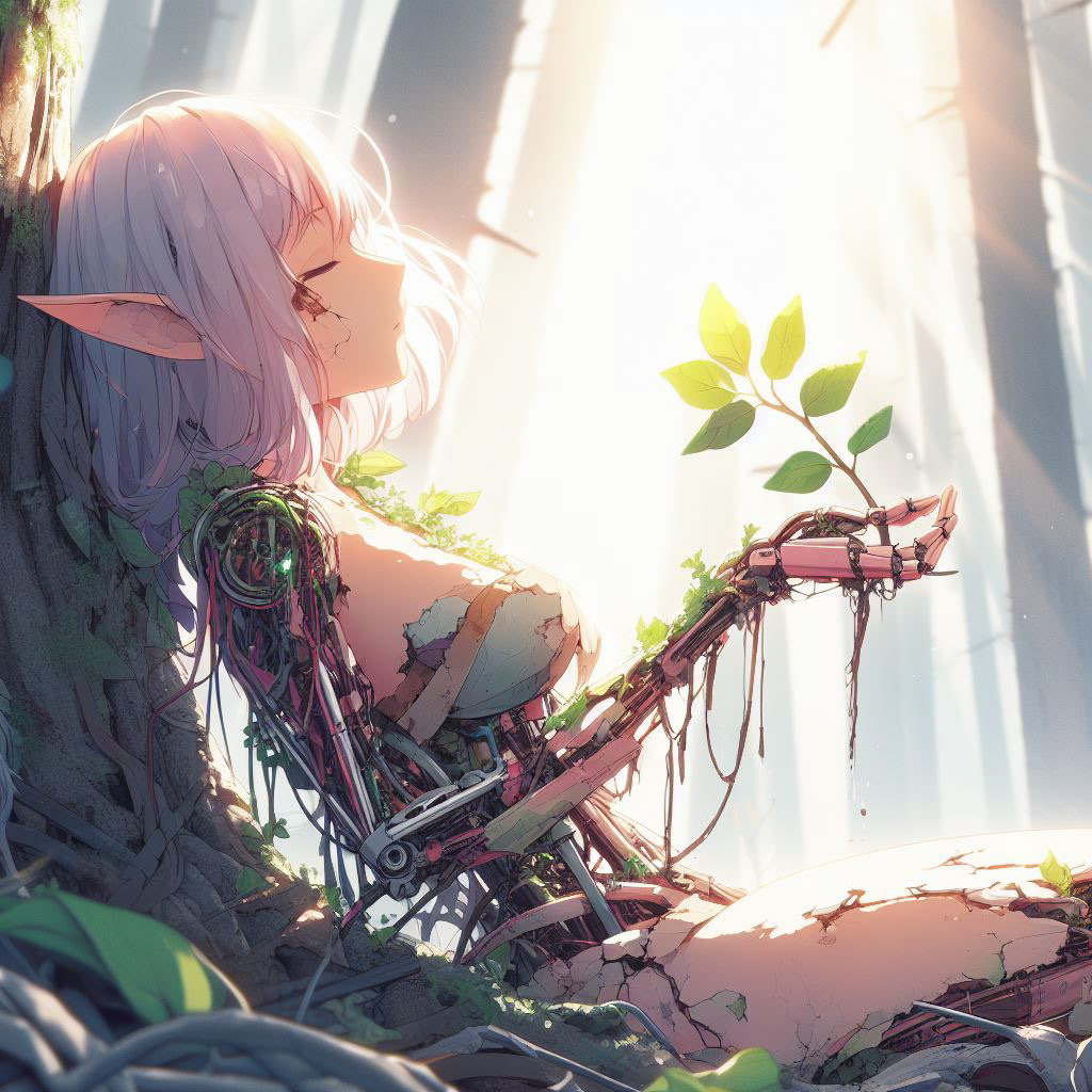 「長生きのエルフの亡骸と出くわすって俺達運がいいな」 「古の人工生物って話が聞いたんだけど、まさか中に機械がぎっしりと詰まってるとは」 「それよりエネルギーコアがまだ生きてるっぽいよ!永動機の類だったらその金で一生困らないさ!早速持ち帰ってバラして確かめよう!」